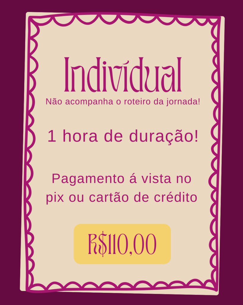 Todas nós carregamos marcas, história que deixaram cicatrizes no corpo e na alma. E muitas vezes sem perceber, repetimos os mesmos padrões, relacionamentos e ciclos de dor. Esta jornada foi criada para que você possa olhar com amor para tudo o que viveu, compreender a energia por trás das suas experiências e transformar feridas em forças e consciência.